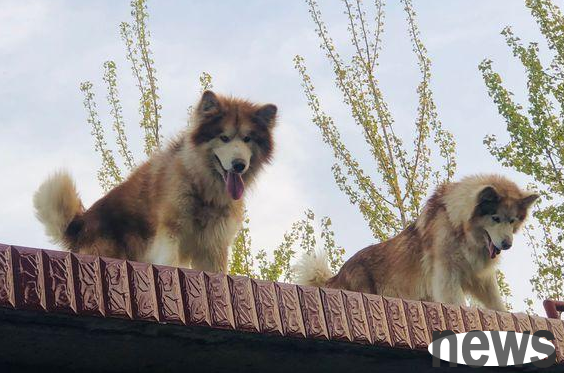 Netizens do not let two Alaskan dogs on the roof. They are not safe on the roof, and they do not have a very good guarding effect. Every time netizens see them on the roof, they knock it down, but they often come up.