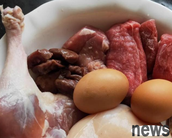 First of all, you need to go to the market to buy fresh chicken breasts, beef, duck legs, liver, pork, saury, and eggs (see the picture below for details). Chop everything into pieces, simmer it in a pot of water for half an hour, and then filter it with cold boiled water two or three times to filter out the oil on the meat (because cats tend to get black chins when eating food with a high oil content, it is recommended to filter out the excess oil). Finally, pour some water and mix it with the meat, and the cat will be happy to eat!