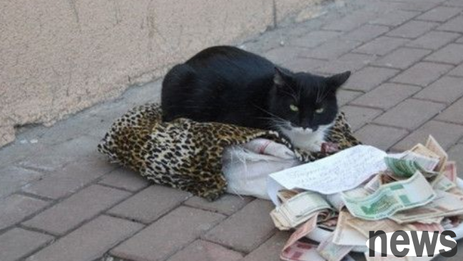 This cat sat obediently on the street and accidentally fell asleep. Passersby thought it was strange. When they came up to take a look, they didn't expect that it was begging. There was a note in front of it saying that it needed money to buy fish or meat. Usually cats are not very patient. In fact, the owner was watching from the sidelines. The woman already had many stray cats in her home, so she came up with a strange trick to let the cats earn their own food. Unexpectedly, this trick was very useful and attracted many people to spend their money.