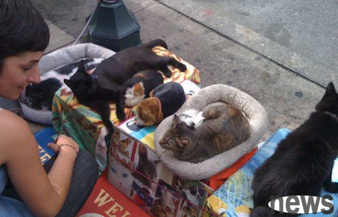 During the process, the cat kept staring at the money, fearing that it would be taken away by others. It was very responsible and cute. Although it was interesting and creative, it may also involve animal abuse. In the past few years, there were similar cat and dog gangs on the streets of New York. The cats and dogs each had a small bed to sleep in. In front of the bed, there were three small carpets with the word WELCOM (Welcome) spread out, and a small bowl was placed so that passersby could donate money. Some people thought they were cute and felt sorry for the animals and took out their money. However, after the police received the report, they found the owners of this group of cat and dog beggars and accused them of cruelty.