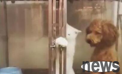 The next two pets were locked up. As soon as the netizen left, the two pets began to think about getting out of the cage. The kitten thought about it for a while and barked as if to say: I can open the cage! However, after the cat scratched and scratched the cage, it still could not be opened. The dog next to it was still taunting the cat. The cat seemed not to want to embarrass himself in front of the dog. After some efforts, he finally opened the door with a bang.