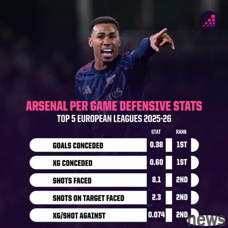 Statistics show that Arsenal ranks among the top two in the Premier League in five key defensive statistics this season: