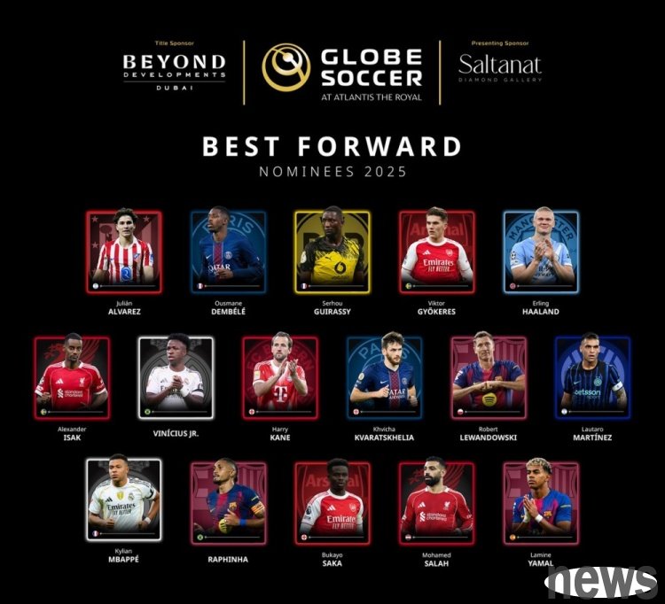 The Global Football Awards announced the candidates for the best forward in 2025, including Mbappe, Haaland, Dembele and Yamal.