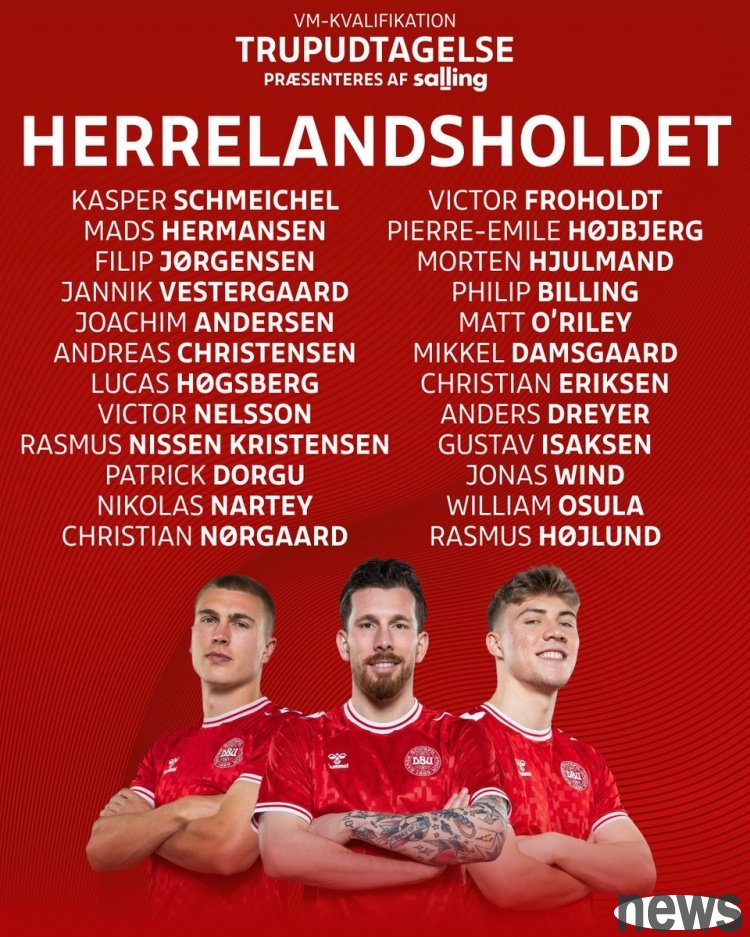 Denmark announced the national team roster for this month’s World Cup preliminaries. Schmeichel Jr., Eriksen, Hoylen and Dolgu are on the list.