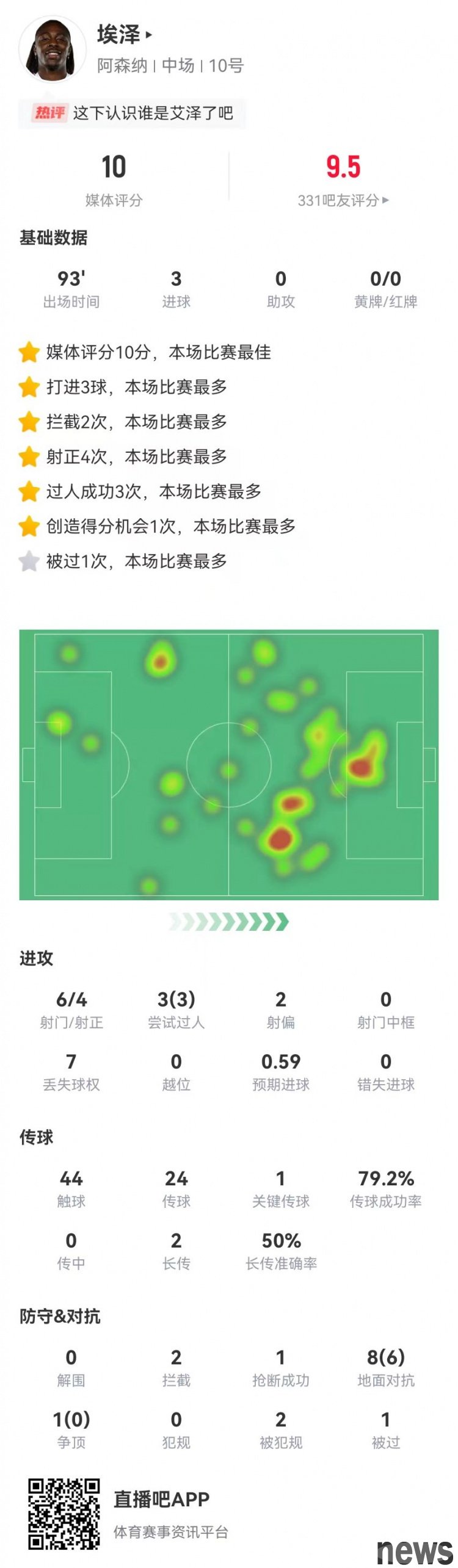 Arsenal defeated Tottenham 4-1 in this round of the Premier League. Eze's statistics in this game are as follows: