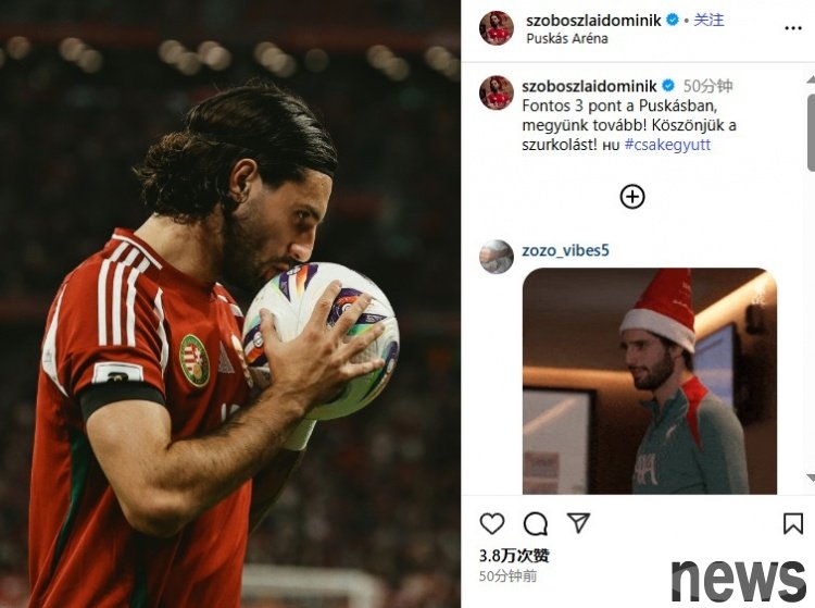 Hungary defeated Armenia 2-0 in the World Cup preliminaries. Hungarian midfielder Szoboszlai updated his personal social media after the team's victory and posted a photo of himself kissing the match ball.