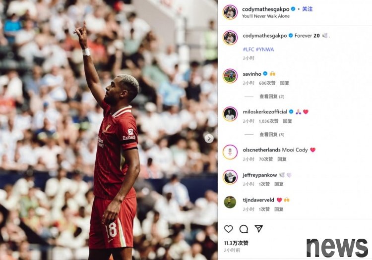 In the 87th minute, Dok crossed the middle, Nunes missed the ball to the back point, Gakebo adjusted and shot with his right foot. Then Gakebo made a classic celebration move, and paid tribute to his teammates with a 20-plus hand.