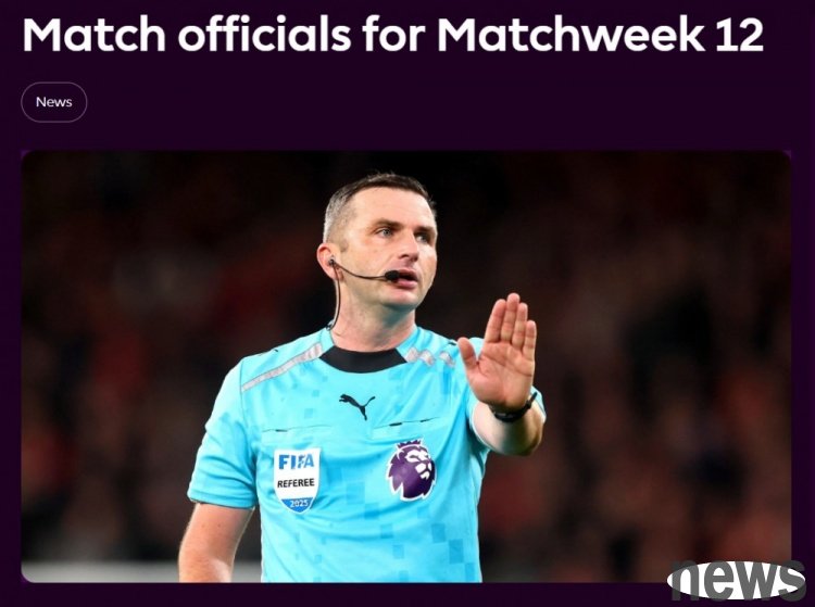 The Premier League officially announced the referee for each game in the 12th round of the league. Michael Oliver will officiate Arsenal vs. Tottenham.